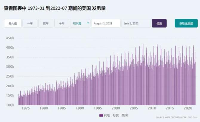 美國(guó)歷史上發(fā)電量有三個(gè)階段: