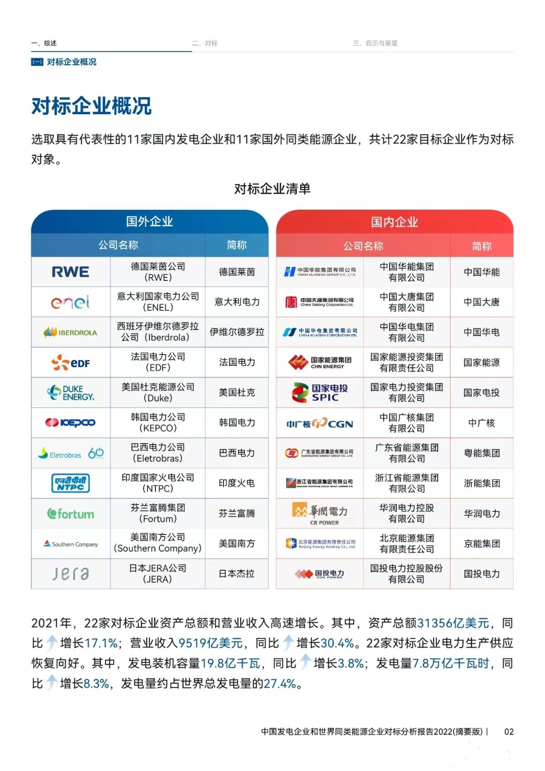 日前中國(guó)電力企業(yè)聯(lián)合會(huì)2022 年年會(huì)在??谂e行,中電聯(lián)電力發(fā)展研究院院長(zhǎng)張?zhí)旃庠跁?huì)上正式發(fā)布《中國(guó)發(fā)電企業(yè)和世界同類能源企業(yè)對(duì)標(biāo)分析報(bào)告2022》,選擇了國(guó)內(nèi)11家與國(guó)外11家代表性同類企業(yè)進(jìn)行對(duì)比分析!國(guó)家能源集團(tuán)在裝機(jī)量、發(fā)電量等指標(biāo)上全球領(lǐng)先,但國(guó)內(nèi)發(fā)電企業(yè)的海外營(yíng)收較全球同行偏低。