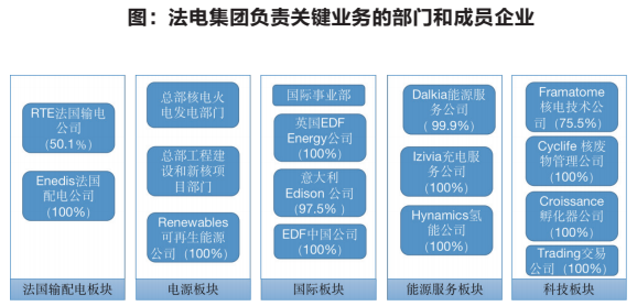 戰(zhàn)略決定組織變革,組織支撐戰(zhàn)略落地。目前法電負(fù)責(zé)關(guān)鍵業(yè)務(wù)的成員企業(yè)和部門可以歸納為五大板塊,如下圖所示。
