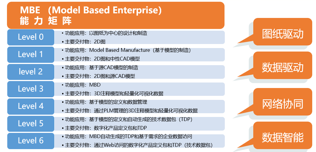 數(shù)字化轉(zhuǎn)型的過程,也就是消滅圖紙的過程,從二維圖紙驅(qū)動,慢慢變成數(shù)據(jù)驅(qū)動,企業(yè)要有三維數(shù)據(jù),要有MBD,再往前走就是網(wǎng)絡(luò)協(xié)同,最后向數(shù)據(jù)智能過渡。