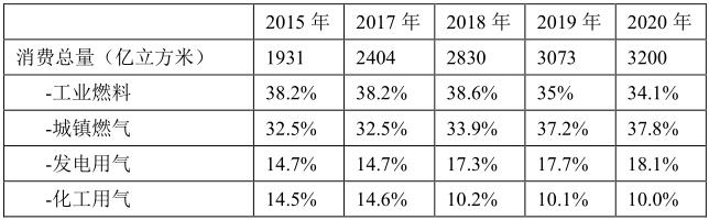 天然氣消費結構是指天然氣利用的鄰域。天然氣作為工業(yè)燃料和城鎮(zhèn)燃氣,在中國一直占據(jù)重要地位,特別是城鎮(zhèn)民用燃料呈現(xiàn)逐年上升的趨勢。中國的燃氣發(fā)電在全球居第三位,用氣量也呈現(xiàn)快速上升。中國是一個農業(yè)生產(chǎn)大國,因此化肥生產(chǎn)一直占據(jù)重要地位,近年約有下降但產(chǎn)量卻上升。