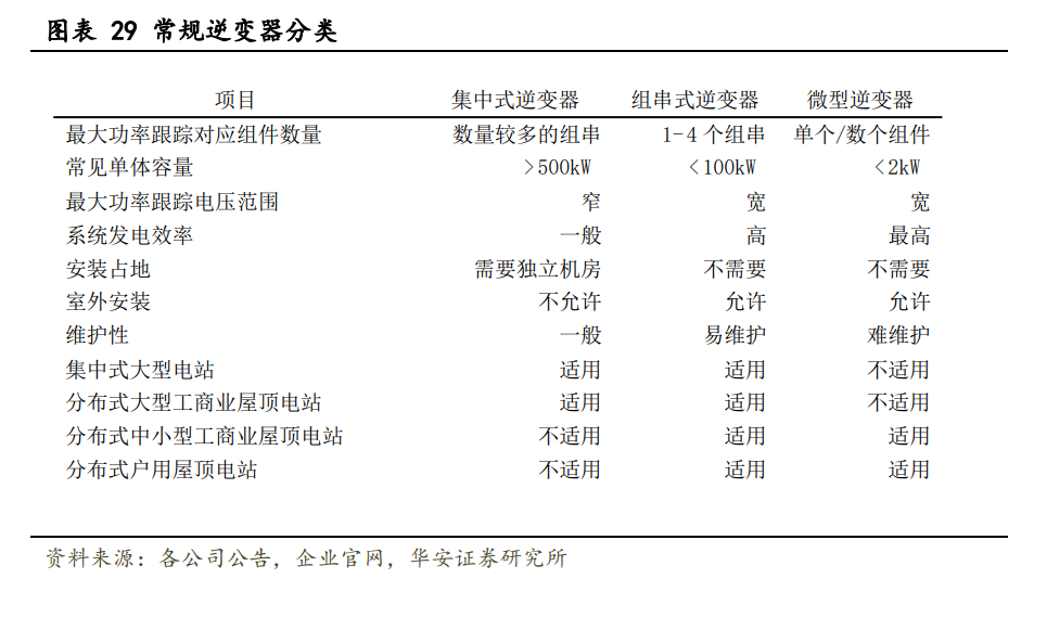 組串 PCS 彌補集中式不足,開啟規(guī)?;瘧?。業(yè)內(nèi)目前電池儲能系統(tǒng)主要采取集中 式 PCS,多組電池并聯(lián)將引起電池簇之間的不均衡,久之并聯(lián)電池簇中會出現(xiàn)一部分電 池實際出力不足,而另一部分超出倍率使用的現(xiàn)象,造成“木桶”效應;而組串式 PCS 可 以實現(xiàn)簇級管理,提升系統(tǒng)壽命,提高全壽命周期放電容量,規(guī)?;瘧泌厔菀岩婋r形。 當前市場以組串式逆變器為主,微型逆變器尚處于發(fā)展階段。綜合考慮逆變器的不同技 術并結合其市場策略做出選擇的背景下,當前組串式逆變器仍是市場較為主流選擇。目 前,華為、陽光電源、固德威、錦浪科技等光伏逆變器的核心供應商均在組串式逆變器 有布局。而微型逆變器作為一種新的技術路線尚處于發(fā)展期,技術門檻較高,供應商較 少。國外的微型逆變器市場發(fā)展較早,但出貨仍集中于海外龍頭 Enphase。我國微型逆變 器供應商較少,一方面是因為國內(nèi)相關技術研發(fā)較晚,另一方面是因為國內(nèi)市場對于微 型逆變器的需求處于導入階段,尚未進入放量階段。