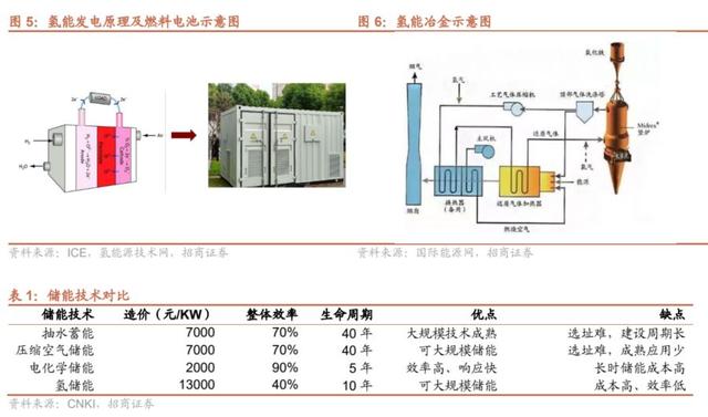 Ø 儲(chǔ)能:可再生能源裝機(jī)快速增長(zhǎng)帶來(lái)消納問(wèn)題,氫及衍生氣體易實(shí)現(xiàn)大規(guī)模長(zhǎng)周期儲(chǔ)能,存儲(chǔ)特性與電化學(xué)儲(chǔ)能互補(bǔ),是重要的消納手段。