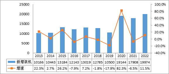 圖6 2013—2022年全國新增電力裝機(jī)及增速情況(單位:萬千瓦)