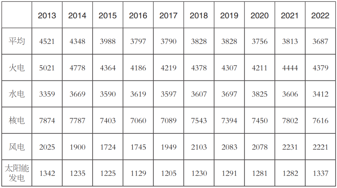 表5 2013—2022年發(fā)電設(shè)備利用小時(shí)數(shù)(單位:小時(shí))