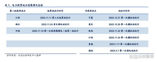 現(xiàn)貨市場分省試運(yùn)行提速,現(xiàn)貨時(shí)代或?qū)砼R。2022 年 11 月,國家能源局公開發(fā)布《電 力現(xiàn)貨市場基本規(guī)則(征求意見稿)》《電力現(xiàn)貨市場監(jiān)管辦法(征求意見稿)》并征求 社會意見,標(biāo)志著全國范圍內(nèi)的省級電力現(xiàn)貨市場發(fā)展將出現(xiàn)提速。第一批 8個(gè)試點(diǎn)地區(qū) (南方(以廣東起步)、蒙西、浙江、山西、山東、福建、四川、甘肅)已于 2022 年 6 月 底啟動(dòng)長周期結(jié)算試運(yùn)行,第二批 6個(gè)試點(diǎn)地區(qū)(上海、江蘇、安徽、遼寧、河南、湖北) 已于 2022 年 7 月底前啟動(dòng)模擬試運(yùn)行。四季度以來,第二批現(xiàn)貨試點(diǎn)中湖北、河南已經(jīng)開 始啟動(dòng)調(diào)電試運(yùn)行,江蘇也于 11 月開展第三次結(jié)算試運(yùn)行。此外,非現(xiàn)貨試點(diǎn)省份對于現(xiàn) 貨市場的建設(shè)推進(jìn)積極性也較高:寧夏、重慶、陜西、江西在 2022 年四季度均開展首次模 擬試運(yùn)行;青海、湖南也分別于 2023 年 1 月和 4 月開展模擬試運(yùn)行和調(diào)電試運(yùn)行。2023 年有望出現(xiàn)全國范圍內(nèi)的現(xiàn)貨市場熱潮,“現(xiàn)貨時(shí)代”或?qū)砼R。