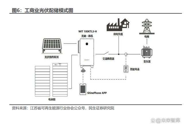 工商業(yè)用戶合理配置儲能可提供就地消納能力,緩解電網(wǎng)壓力。分布式光儲一 體化是一種布置在用戶側(cè)的集能源生產(chǎn)消費(fèi)為一體的能源供應(yīng)方式,是現(xiàn)代能源 系統(tǒng)不可或缺的重要組成部分。分布式光伏配儲能可在用戶端構(gòu)建小型微電網(wǎng)系 統(tǒng),在用戶遭遇限電、斷電、自然災(zāi)害等電力供給異常的情況下,可開啟離網(wǎng)狀態(tài), 保障負(fù)荷需求,不僅可以大大提高就地消納能力,減緩電網(wǎng)供電壓力,還可以抵消 安裝業(yè)主的電網(wǎng)購買電量,節(jié)省電費(fèi),備受投資者的青睞。