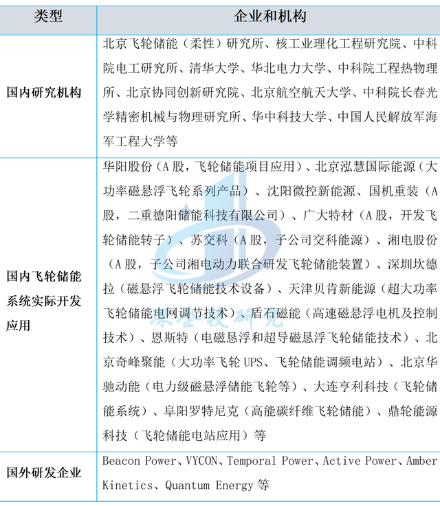 表3 飛輪儲能系統(tǒng)和裝置開發(fā)應(yīng)用重點(diǎn)機(jī)構(gòu)