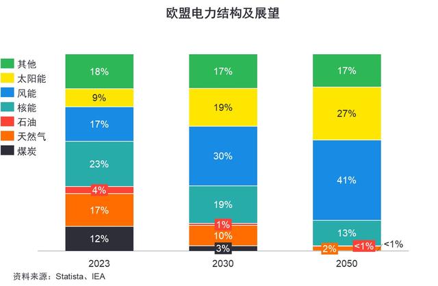 作為全球應(yīng)對氣候變化的引領(lǐng)者和光伏技術(shù)的策源地,歐盟在可再生能源領(lǐng)域展現(xiàn)出了不俗表現(xiàn)。2023年歐盟的光伏裝機總量達到了263吉瓦,位居世界第二。在歐盟的電力供應(yīng)結(jié)構(gòu)中,新能源發(fā)電占比高達67%,其中光伏發(fā)電占9%。據(jù)國際能源署(IEA)預(yù)測,到2030年,新能源發(fā)電比例將進一步提升至86%,而光伏占比預(yù)計將提升至19%,到2050年,光伏占比預(yù)計進一步提升至27%。