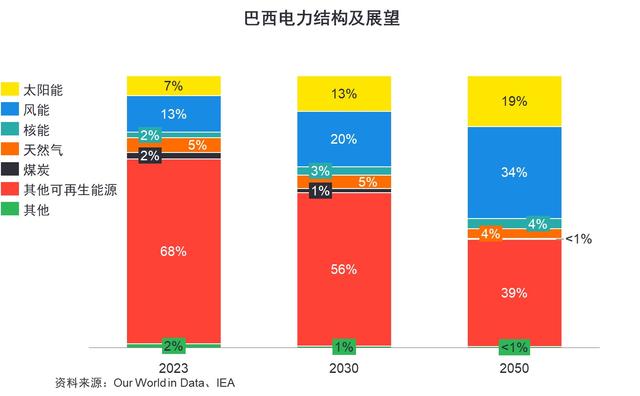 巴西副總統(tǒng)阿爾克明表示,實現(xiàn)太陽能發(fā)電設(shè)備的本地生產(chǎn)具有戰(zhàn)略意義,將有利于巴西能源安全和低碳經(jīng)濟轉(zhuǎn)型。為鼓勵本土光伏產(chǎn)業(yè)發(fā)展,巴西已開始限制進口,2023年12月,巴西外貿(mào)委員會管理執(zhí)行委員會(GECEX)決定對太陽能電池板征收進口稅,并對324類有關(guān)產(chǎn)品恢復(fù)征收進口稅,以促進國內(nèi)可再生能源產(chǎn)業(yè)發(fā)展。此外,政府計劃在2020-2030年之間吸引超過3000億雷亞爾(約600億美元)的投資額用于電源點建設(shè),其中光伏和風(fēng)電新增投資額占比超過50%。