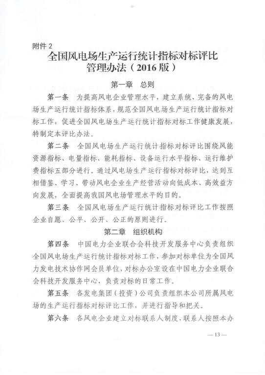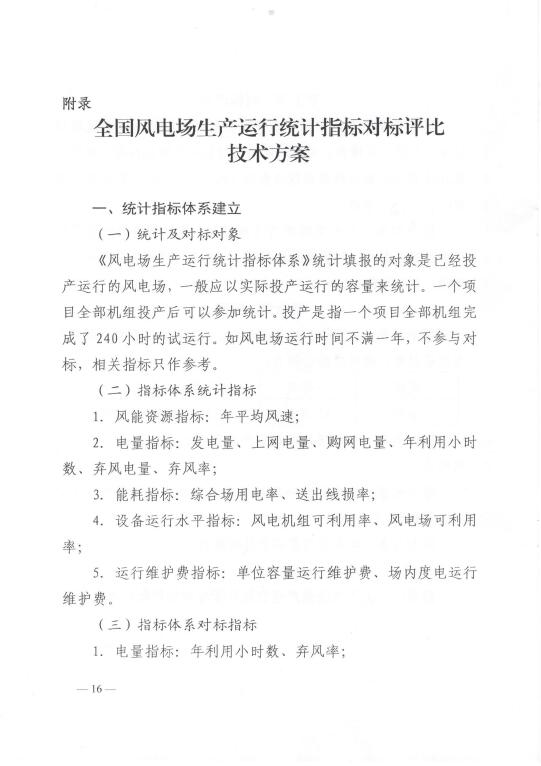 關(guān)于印發(fā)《風(fēng)電場生產(chǎn)運行統(tǒng)計指標(biāo)體系》(2016版)、《全國風(fēng)電場生產(chǎn)運行統(tǒng)計指標(biāo)對標(biāo)評比管理辦法》(2016版)的通知