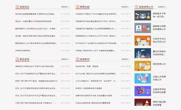 打開新版“信用中國”網(wǎng)站,《中國信用》雜志記者發(fā)現(xiàn)查詢類欄目、資訊類欄目、公示類欄目分區(qū)設(shè)置,更加突出權(quán)威性、及時(shí)性、互動(dòng)性和可讀性。查詢類欄目包括統(tǒng)一社會(huì)信用代碼查詢、行政許可和行政處罰信息查詢、守信紅名單查詢、失信黑名單查詢、重點(diǎn)關(guān)注名單查詢等。資訊類欄目新設(shè)標(biāo)準(zhǔn)規(guī)范、信用公示、聯(lián)合獎(jiǎng)懲、專項(xiàng)治理、誠信文化、城市信用、信用刊物、個(gè)人信用、風(fēng)險(xiǎn)提示、信用大數(shù)據(jù)分析等。公示類欄目包括國家職業(yè)資格目錄清單、重點(diǎn)污染單位污染排放監(jiān)測信息、全國公共資源交易信息等十余個(gè)公示專區(qū)。欄目內(nèi)容和信息將即時(shí)更新。